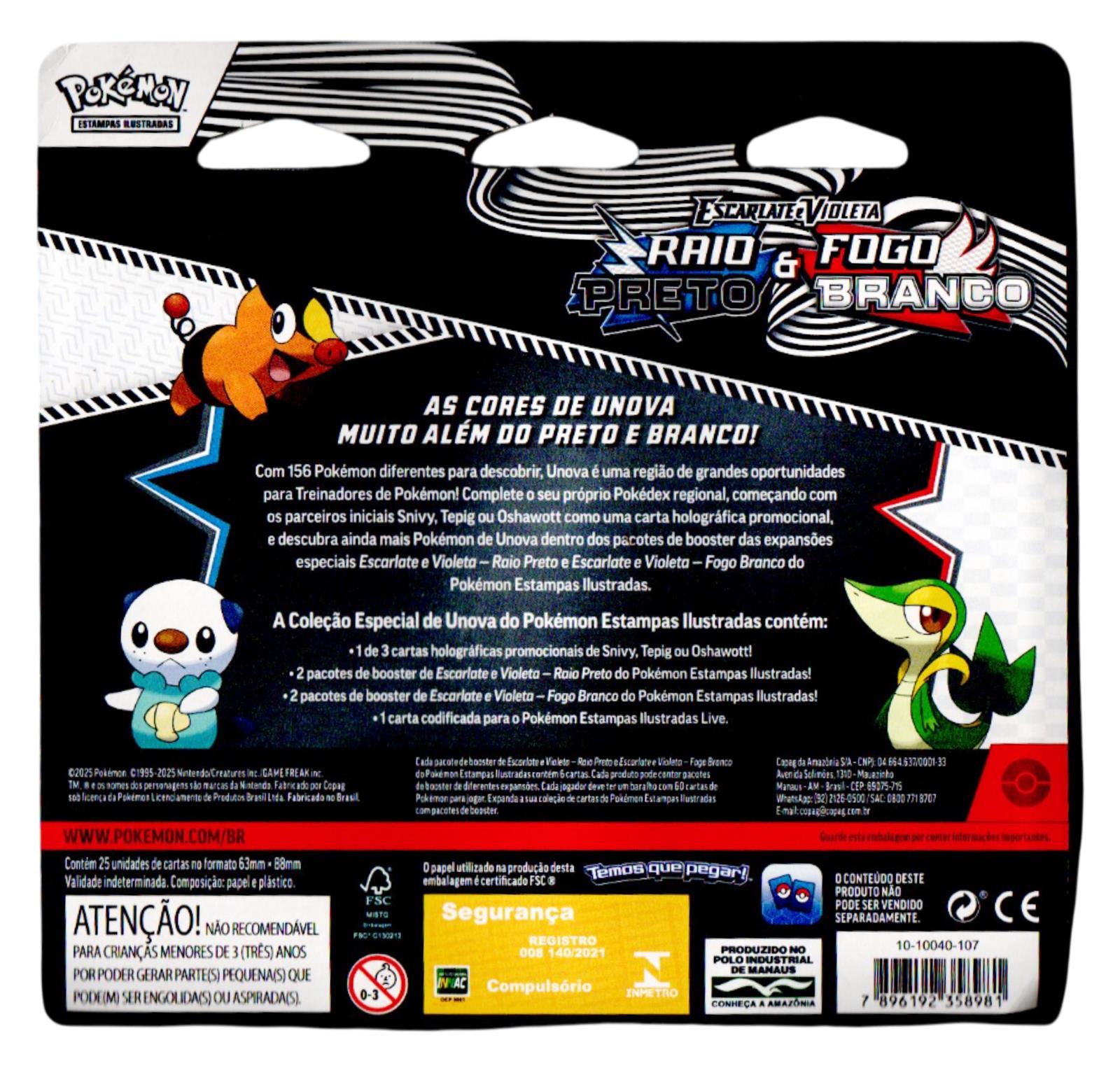 Complete o seu próprio pokédex regional, começando com os parceiros iniciais snivy, tepig ou oshawott como uma carta holográfica promocional, e descubra ainda mais pokémon de unova dentro dos pacotes de booster das expansões especiais escarlate e violeta raio preto e escarlate e violeta fogo branco do pokémon estampas ilustradas.
