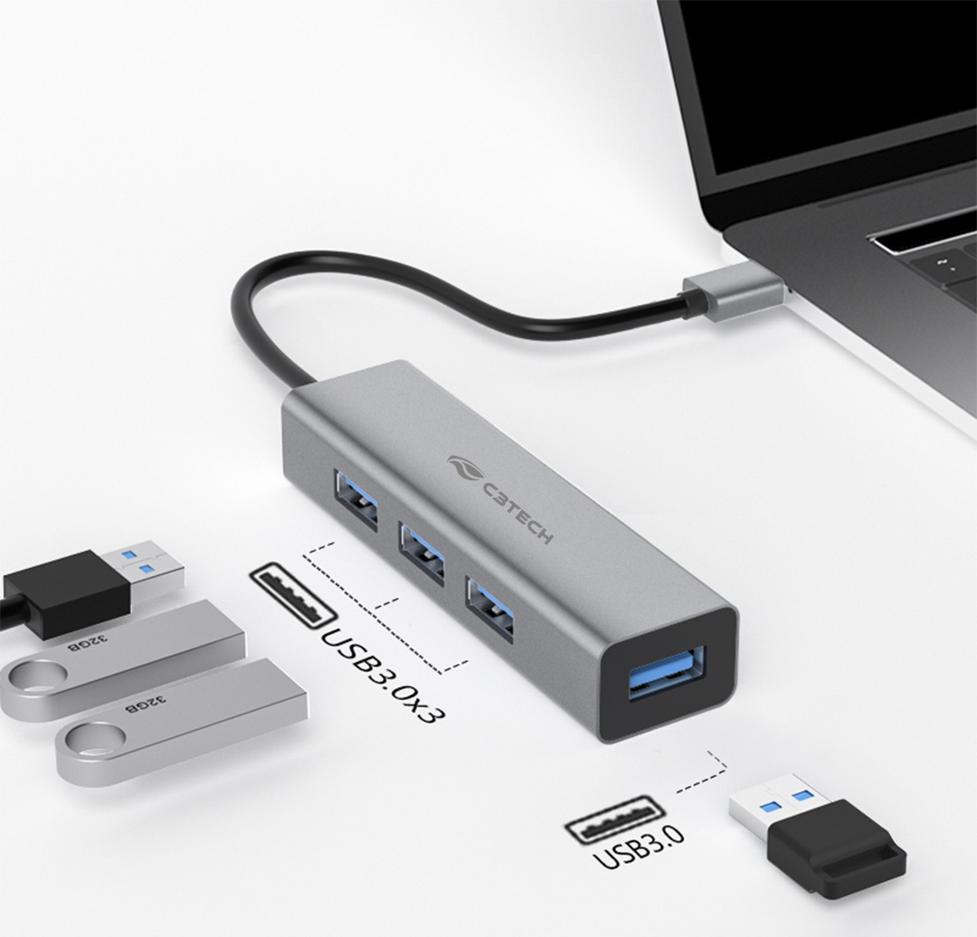 HUB 4 PORTAS USB 3.0 C3TECH HU-340GY EM ALUMÍNIO