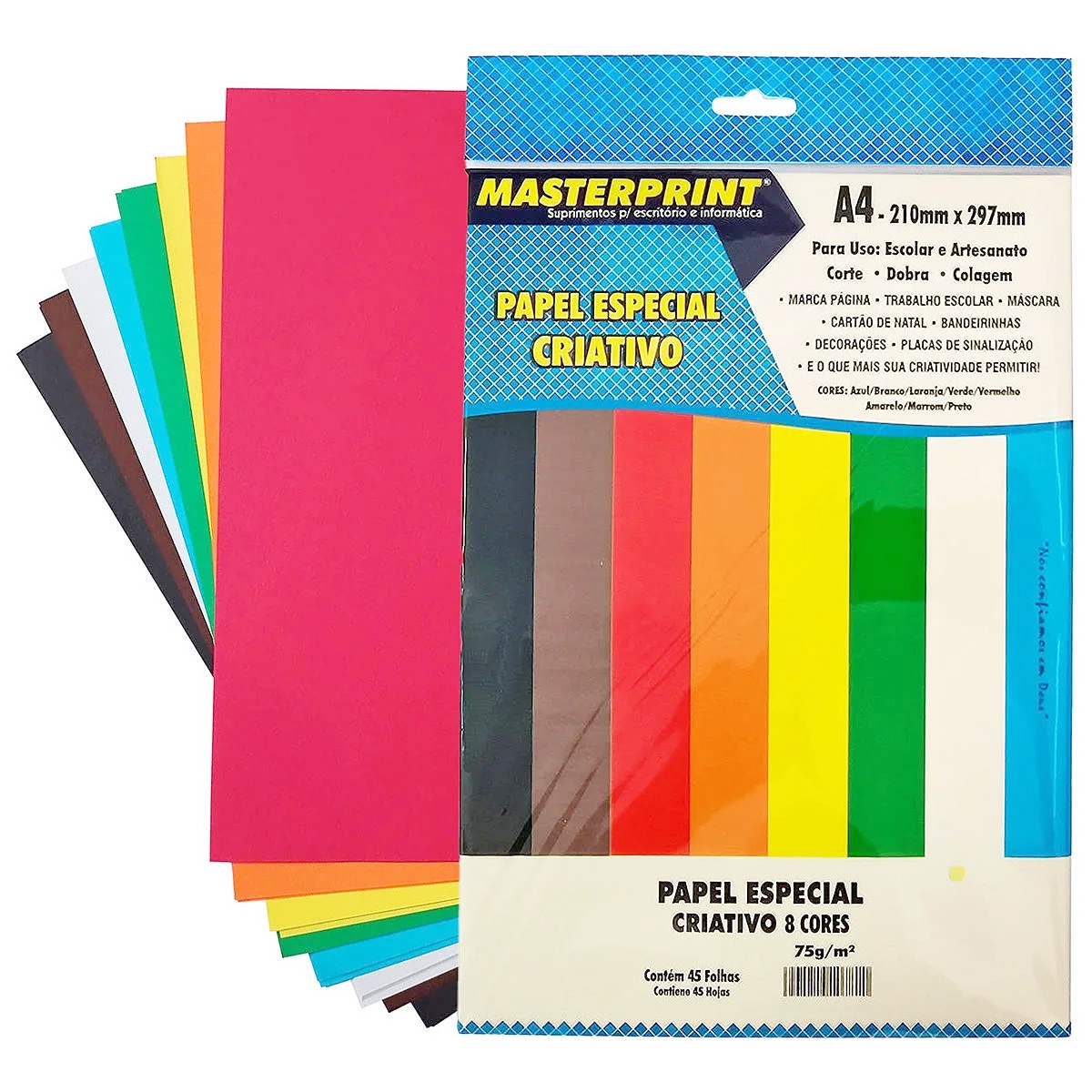 PAPEL ESPECIAL CRIATIVO 8 CORES 75G MASTERPRINT A4 45 FOLHAS