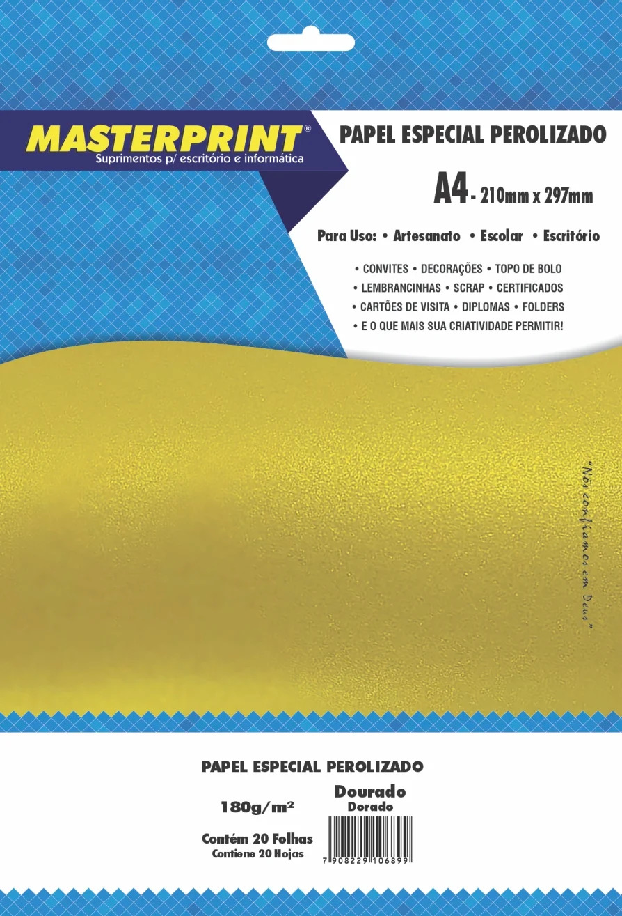 PAPEL ESPECIAL PEROLIZADO DOURADO 180G MASTERPRINT A4 20 FOLHAS