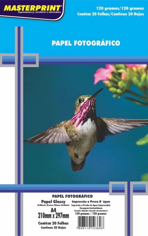 PAPEL FOTO GLOSSY 120G MASTERPRINT A4 20 FOLHAS