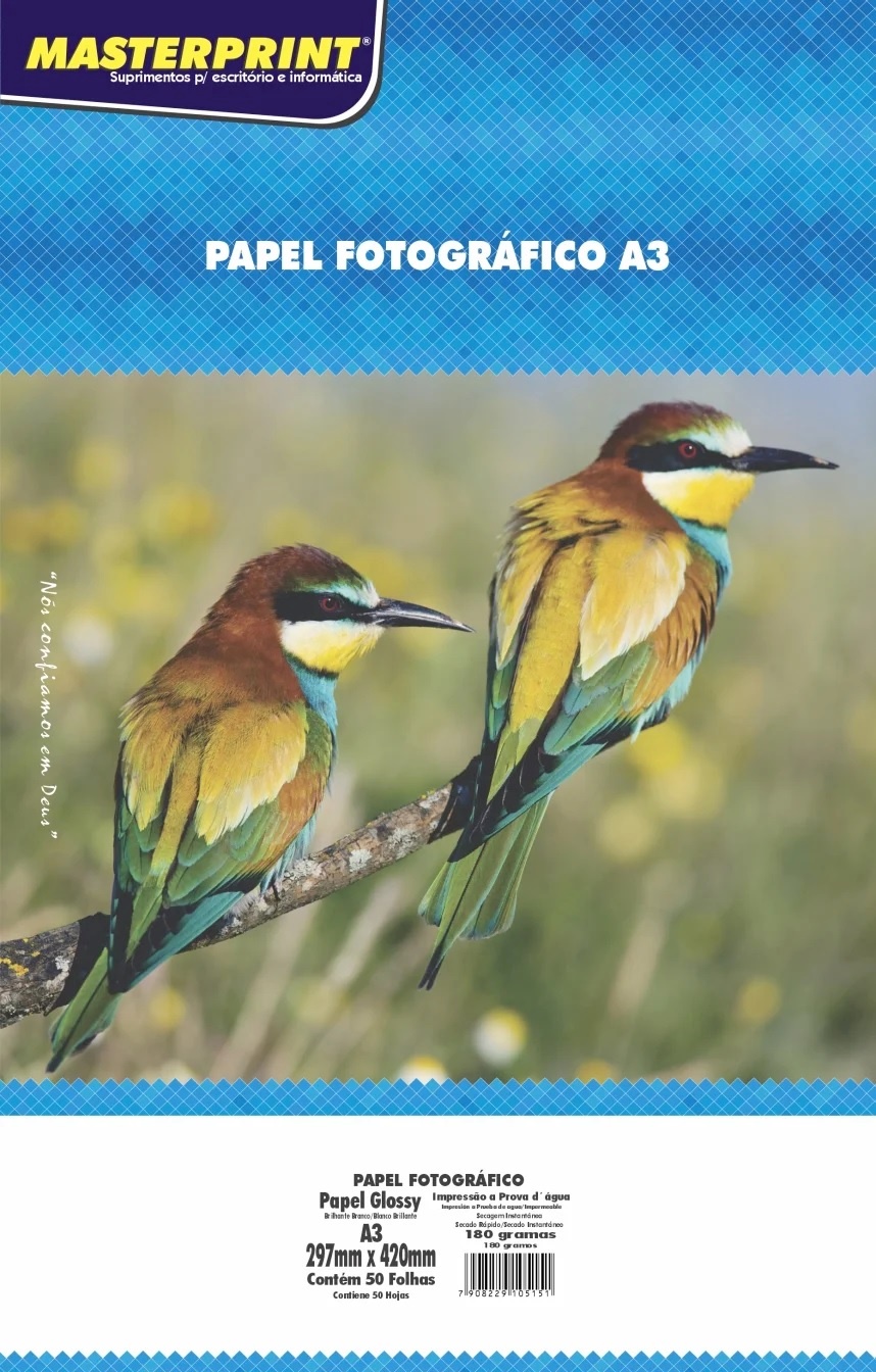 PAPEL FOTO GLOSSY A3 MASTERPRINT 180G 50 FOLHAS