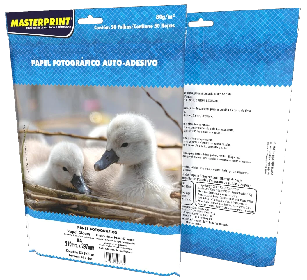 PAPEL FOTO GLOSSY ADESIVO 80G MASTERPRINT A4 50 FOLHAS