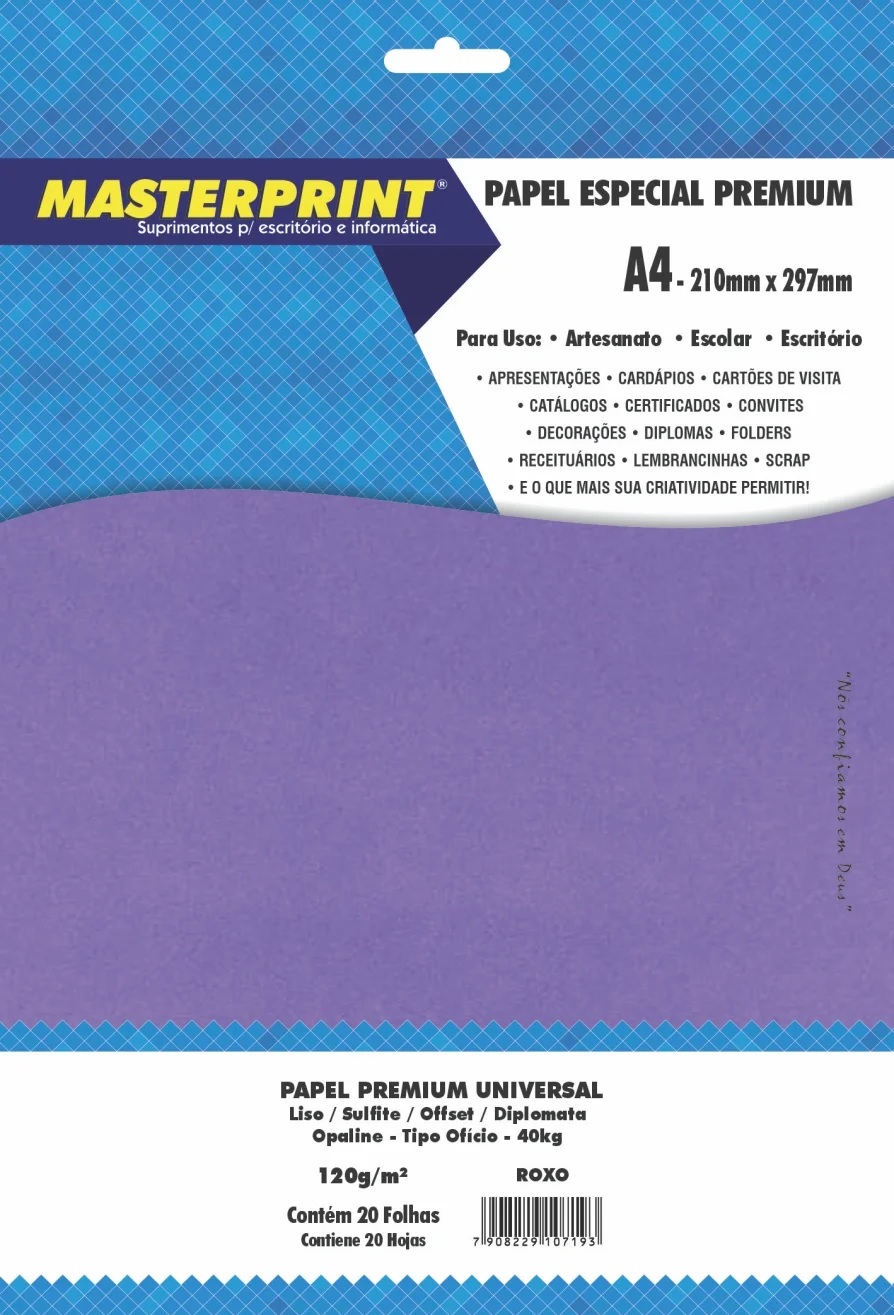PAPEL OFFSET OPALINE DIPLOMATA ROXO 120G MASTERPRINT A4 20 FOLHAS