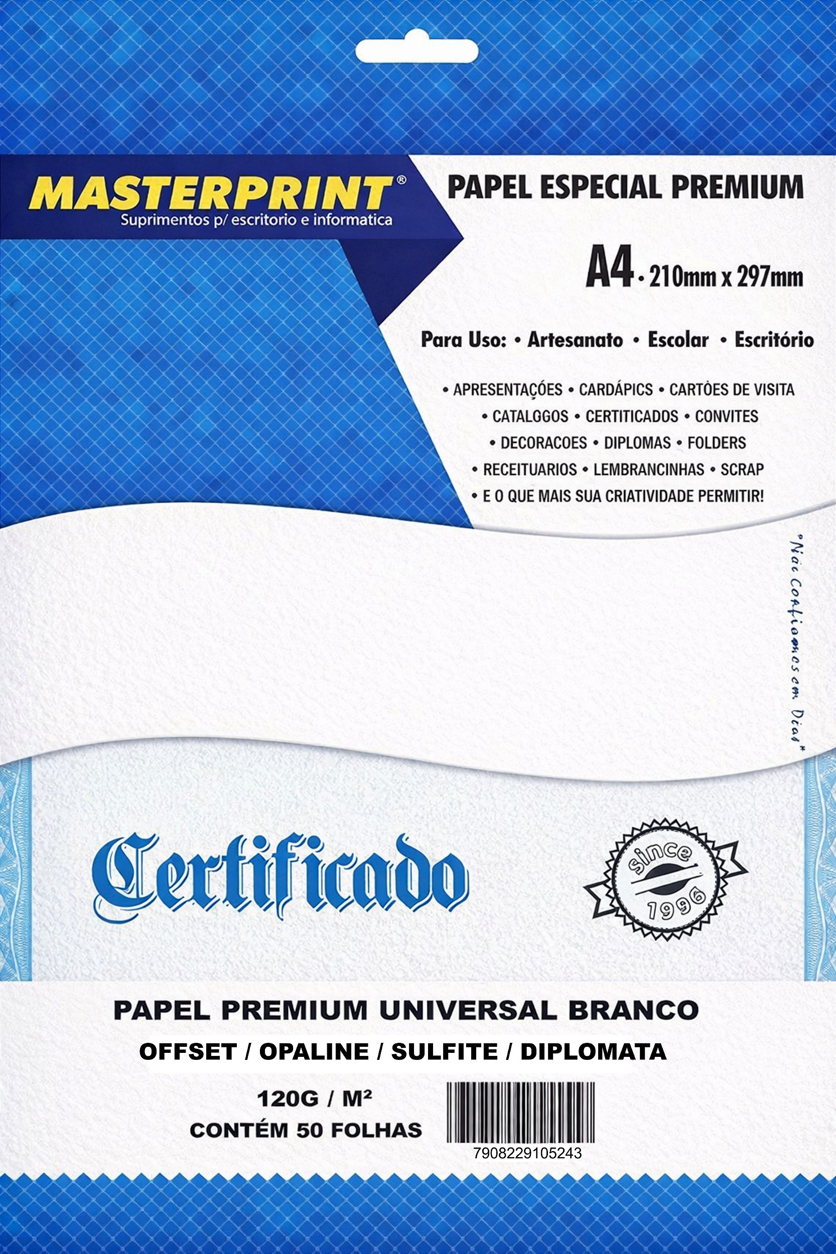 PAPEL OFFSET OPALINE DIPLOMATA SULFITE 120G MASTERPRINT A4 50 FOLHAS