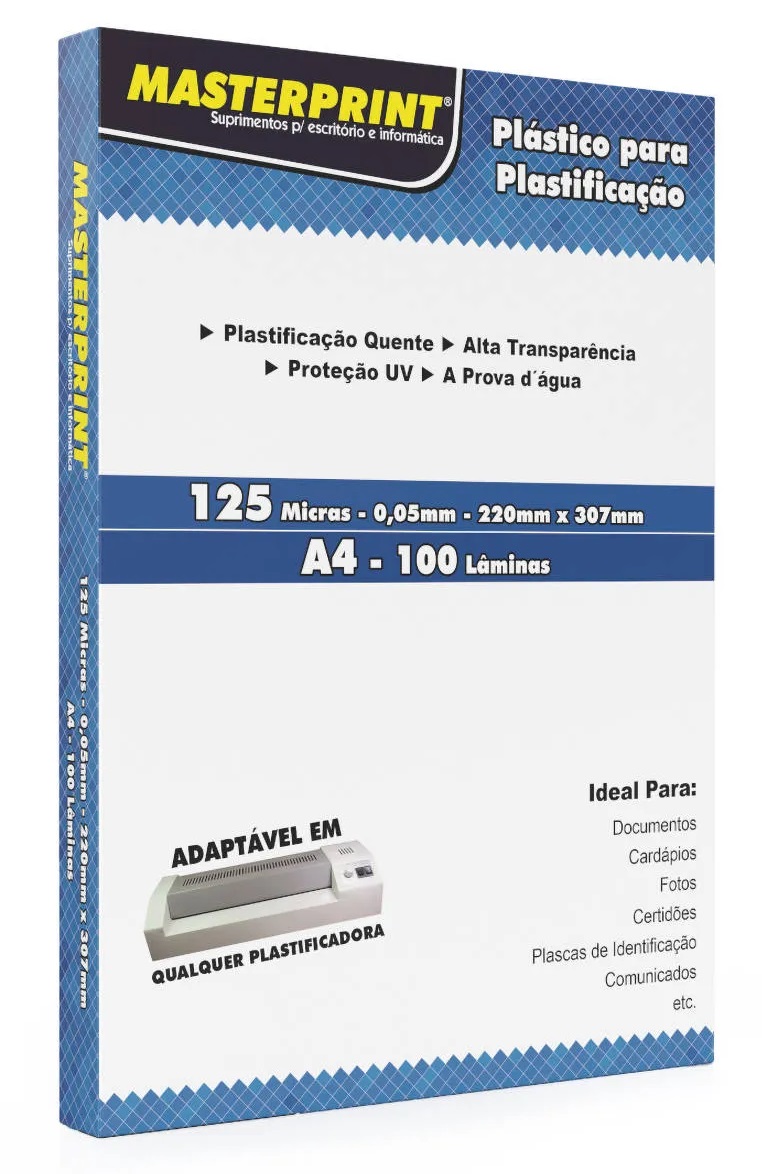 PLASTICO PARA PLASTIFICAÇÃO POLASEAL A4 125 MICRAS 100 UNIDADES MASTERPRINT